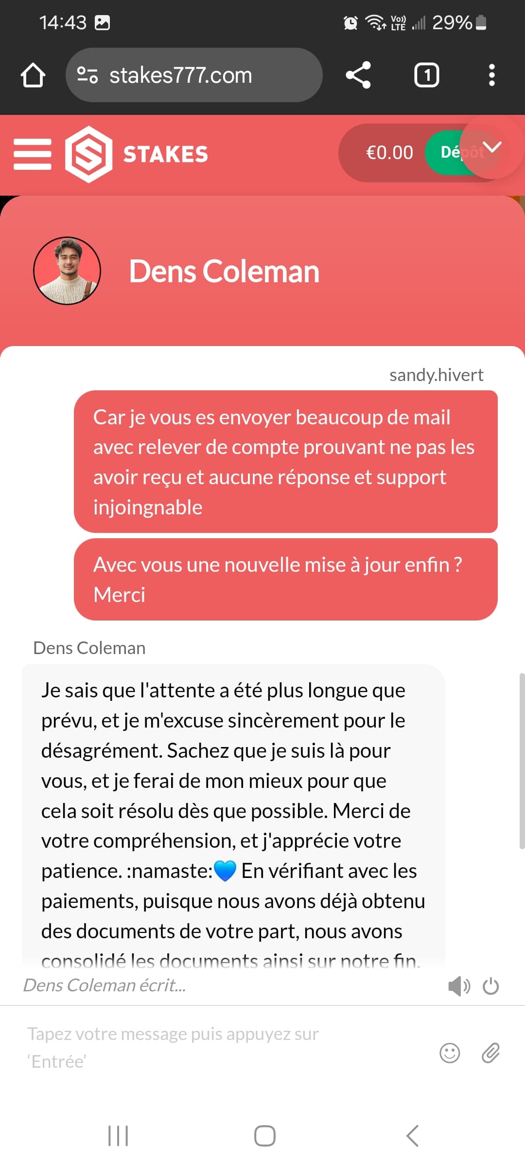 @Linne je leurs avais demander le mail du service financier et ils m’ont repondu que c etait pas possible car c est eu les opérateurs qui leve les tickets …et puis de toute facon plus personne ne reponds ni support ni mail …deplus j ai pleins de message depuis le 9 avril ou il me dise dsl ont comprends on va envoye une demande urgente car ce n es pas normal et on vous recontacte et puis la toujours rien deplus j ai envoyer tout mes relever bancaire par mail depuis le 9 avril sans quil me le demande pour prouver que j ai rien recu …et beaucoup de paiements on ete inverser aussi …y a un beugg avec mes 800 euros chui a bout
