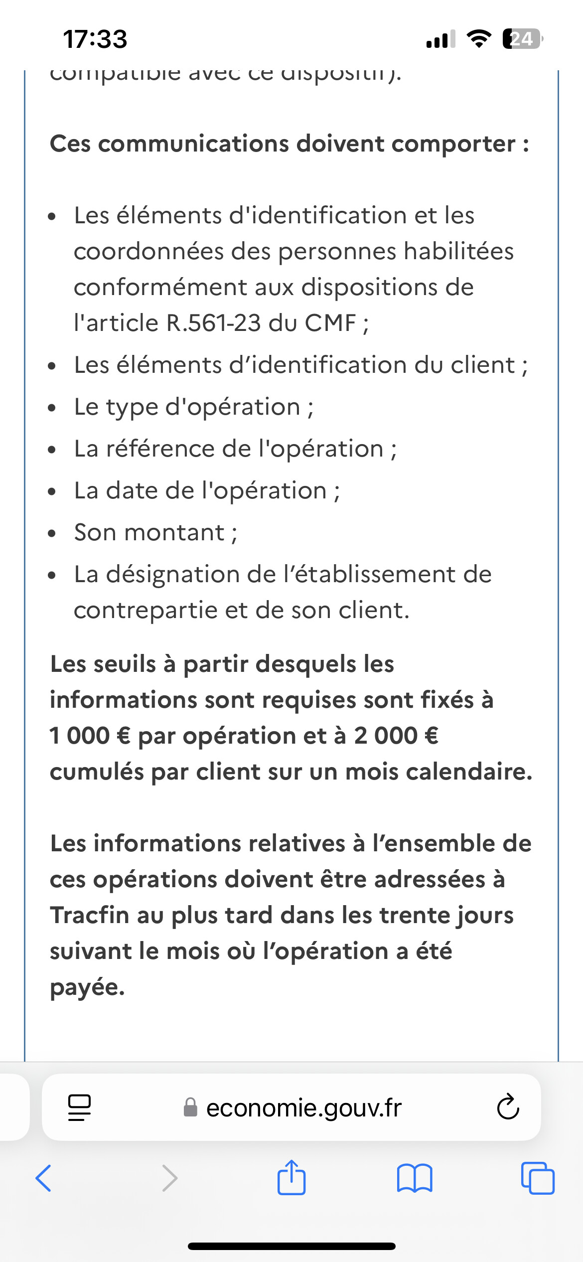 Mais mon banquier ( qui est un copain) m’avait dit 3000 et aussi en fonction de la provenance sachant que Chypre ect c est grand red flag.