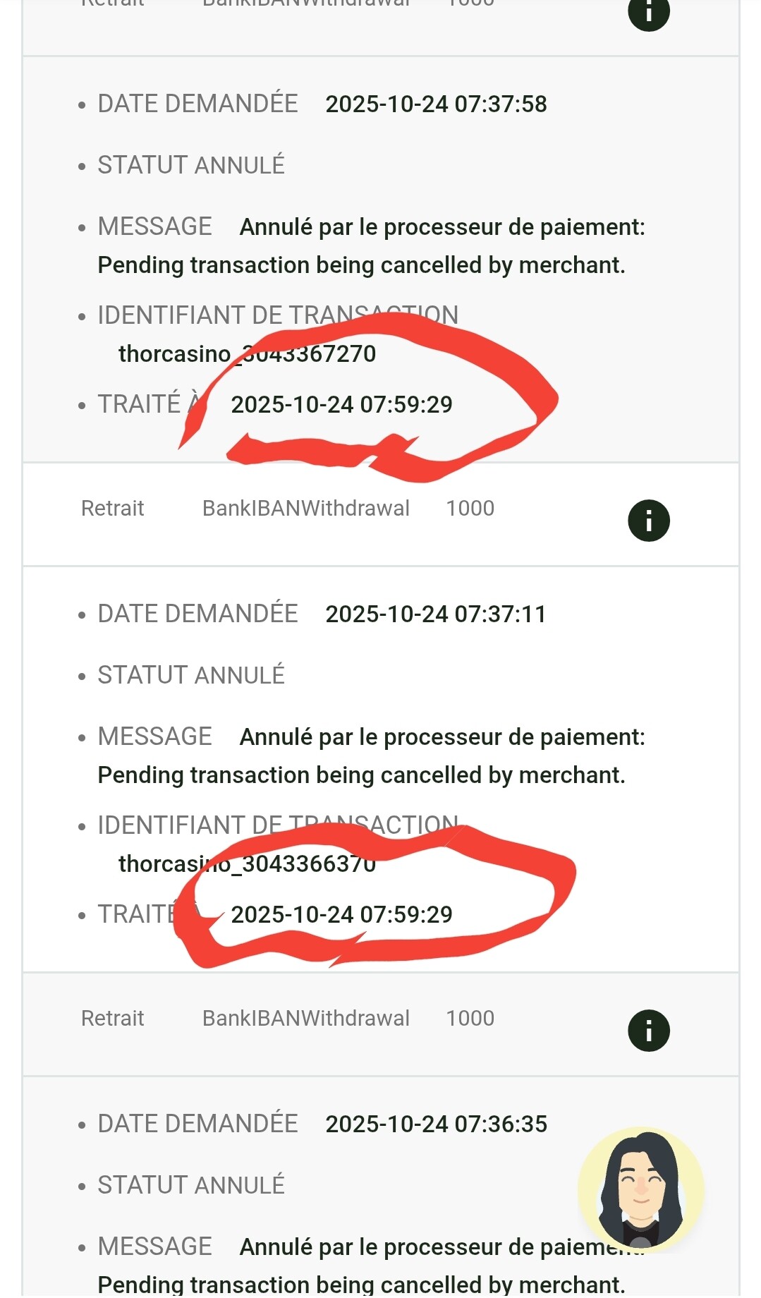 Je peux pas être plus clair et fournir plus de choses que les captures avec l’heure de leurs annulations ( 6retraits annulés en même temps)